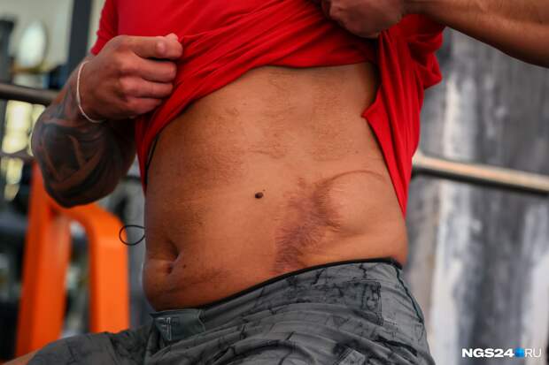 А он выжил, завел семью и стал бодибилдером.В тренажерном зале одного из фитнес-центров Красноярска нас встретил мускулистый загорелый тренер, в котором ничего не выдавало следы страшных травм — 30% ожогов тела струей пламени в 1700 градусов.