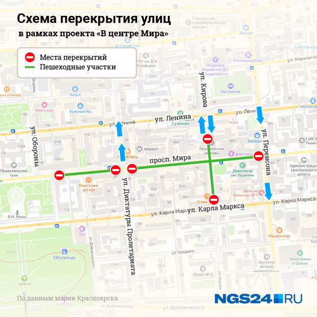 Он сказал, что есть общественный запрос на пешеходный проспект Мира и надо попытаться реализовать такой проект. Активно обсуждать эту идею стали с начала мая, всем предпринимателям на этом участке предложили частично вынести свою работу на улицу. Но эксперты раскритиковали идею пешеходного проспекта Мира в Красноярске. В середине мая мы писали, что кафе и рестораны на участке планируют создать летние веранды с навесами на 400 мест.