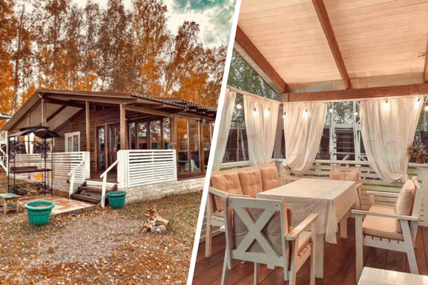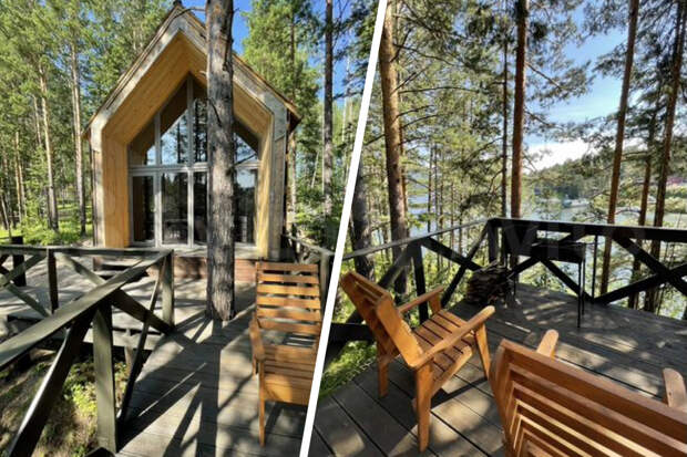 Этот домик в 60 квадратов с двойным светом и большой террасой находится на базе «Грин-парк» на Красноярском море. Добираться сюда из Красноярска около часа, но виды того стоят. Собственники презентуют дом как шале. Но вместить он может четверых взрослых и несколько детей. Для гостей есть спальные места на втором этаже под треугольной крышей, из удобств — посудомоечная машина, душ и туалет, посуда, постельное белье.