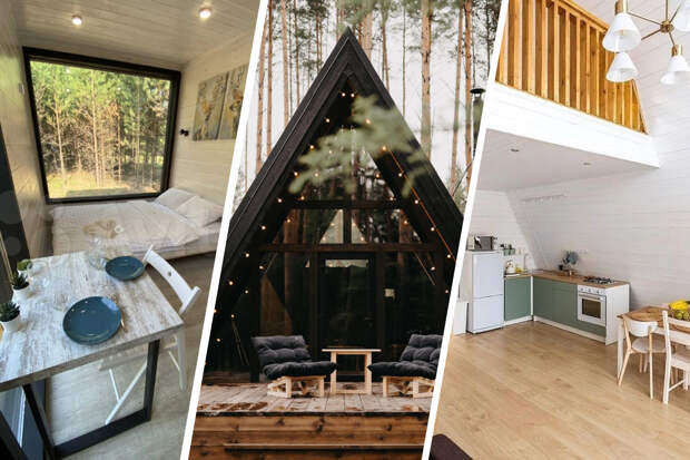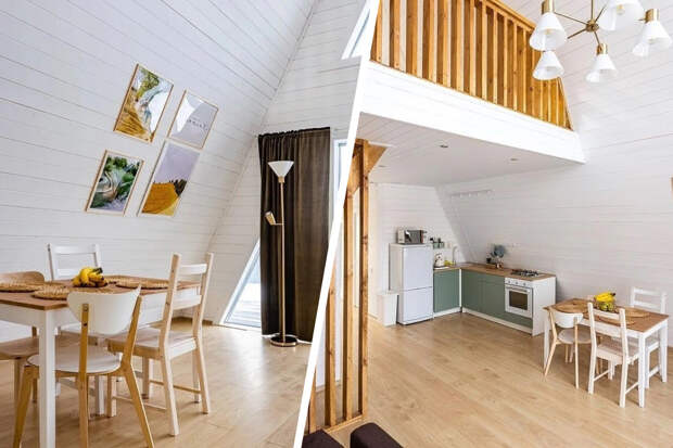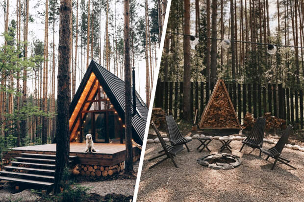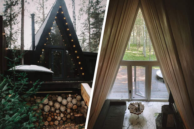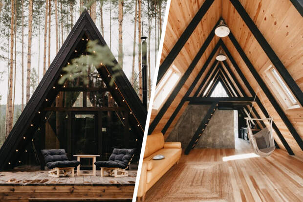 Начнем нашу подборку с двух очень похожих треугольных домиков в стиле «А-фрейм». С английского название переводится, как «рама, каркас». Они очень перекликаются по обстановке, душевности, но находятся в абсолютно разных районах — в Удачном и в поселке Манский.
