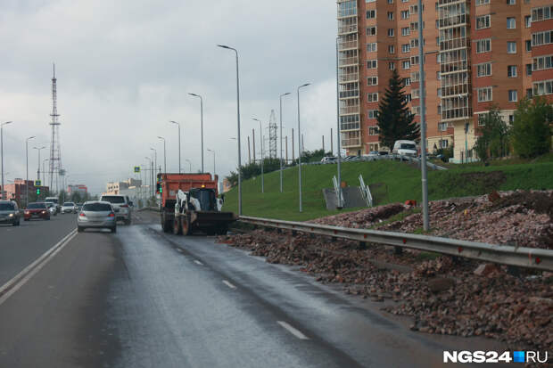 Развязку Николаевского моста завалило камнями. Это произошло возле пешеходного виадука. Грязь смыло с дорожной насыпи дождевыми водами. С утра автомобилистам пришлось объезжать завалы. Судя по кадрам, дорожники уже вышли убирать последствия ливня.