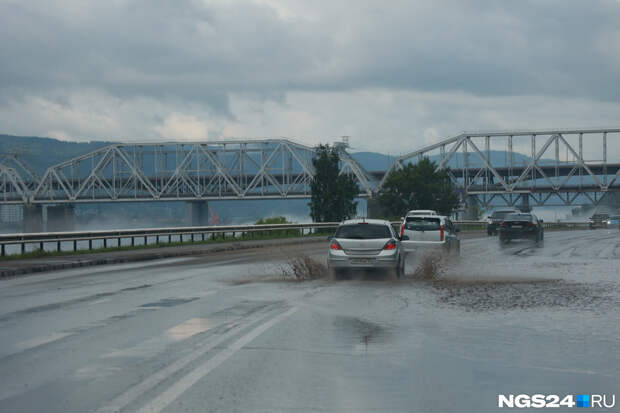 Ливень в Красноярске прошел накануне днем, часть улиц утонули в лужах.