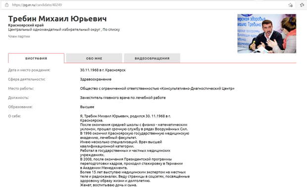 Но самый интересный кандидат в списке Коваленко — Михаил Юрьевич Требин. Согласно официальному сайту праймериз партии, он является действующим членом «Единой России». Как утверждает расследователь, по закону он не может избираться от других партий.