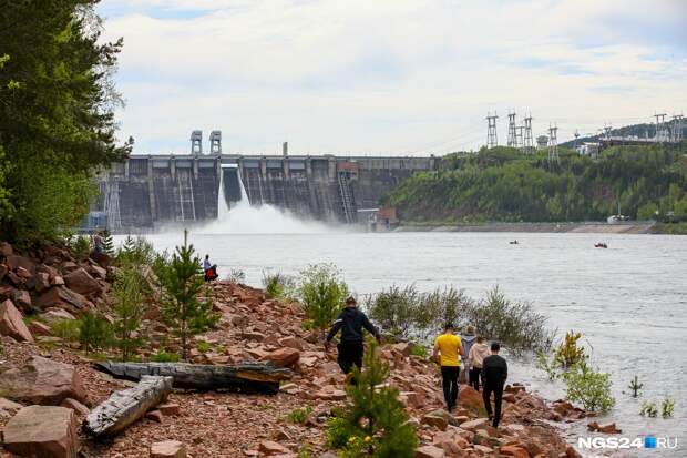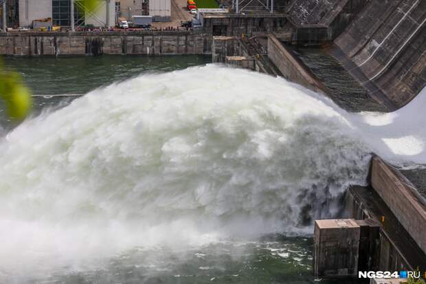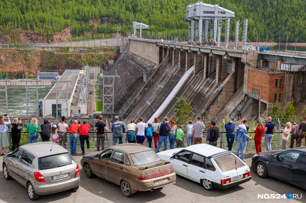 Сегодня корреспонденты NGS24.RU побывали на запуске водосброса — вода пошла по телу плотины в 13.50. Посмотреть на редкое и красивое зрелище уже сегодня приехали не меньше 100 красноярцев, с детьми и даже с собаками.