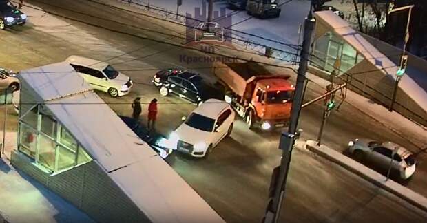 Видео: две аварии на Свободном заблокировали движение на трех улицах