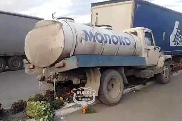 «Веселый молочник!»: автоцистерна врезалась в фуру и полила молоком цветочную клумбу