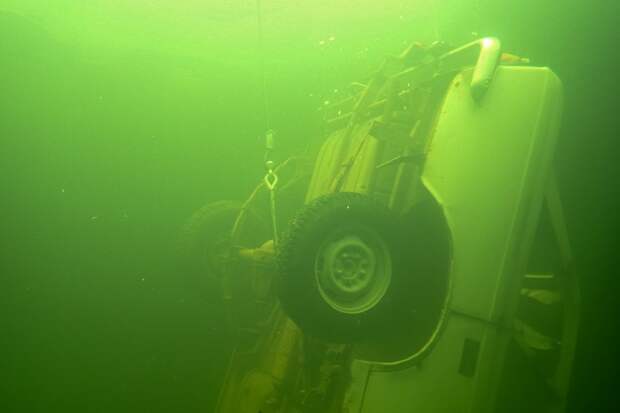 Мужчины успели выбраться на лед, а автомобиль пошел ко дну