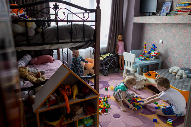 Недавно Мария развелась с мужем и сейчас воспитывает трех детей одна. Каждый день насыщен событиями: нужно отвезти детей в два разных садика, старшего — на подготовку к школе, младших — к логопеду, в перерывах — готовка и уборка дома. Мария работает удаленно, занимается SMM, клиенты в основном московские, поэтому работа начинается, когда сыновья и дочка уложены спать. Признается: троих детей содержит не без усилий. Но то, что получает взамен, стоит этого.