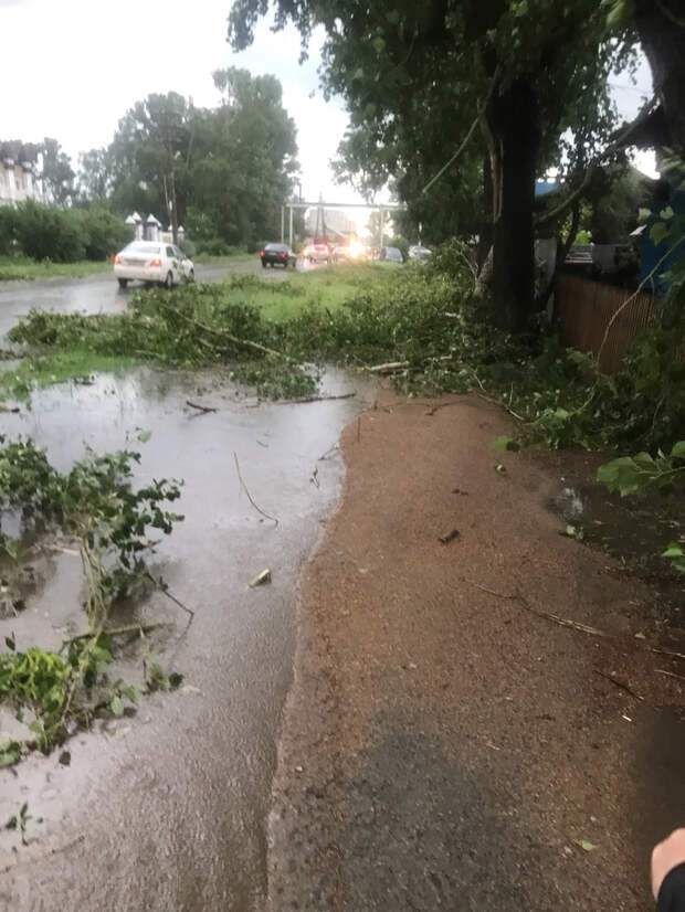 Жители города публикуют в социальных сетях кадры последствий урагана. При этом в официальных источниках информации — в пабликах и на сайте администрации города и района — никакой информации о случившемся и сроках устранения завалов нет.