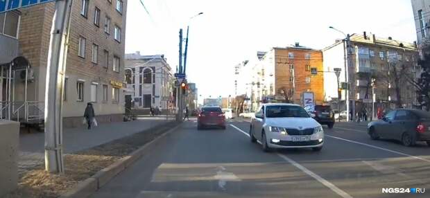 В Красноярске водитель «Яндекс Go» проехал по встречке в центре города. Инцидент на видео снял корреспондент NGS24.RU.
