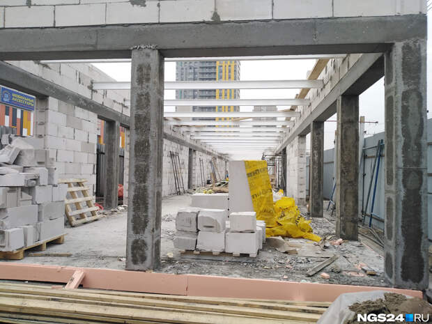 Вокруг павильонов стоит забор. Журналистке NGS24.RU не удалось найти на нем паспорт строительного объекта или другие объявления. Из выписки Росреестра известно, что владелец земельного участка — красноярский бизнесмен Денис Плисевич.