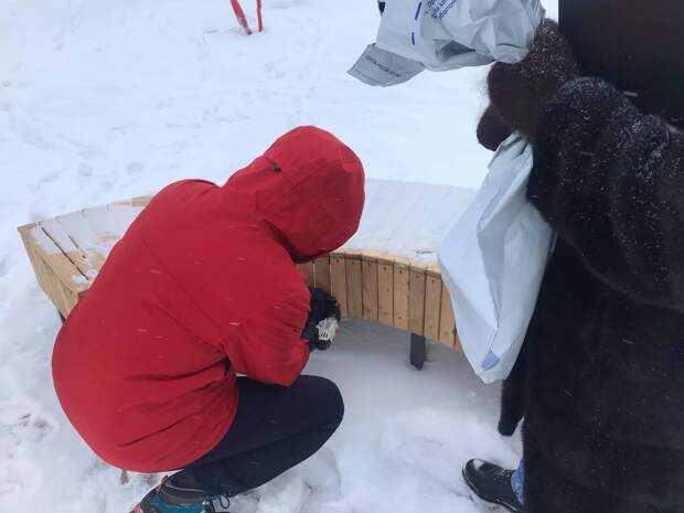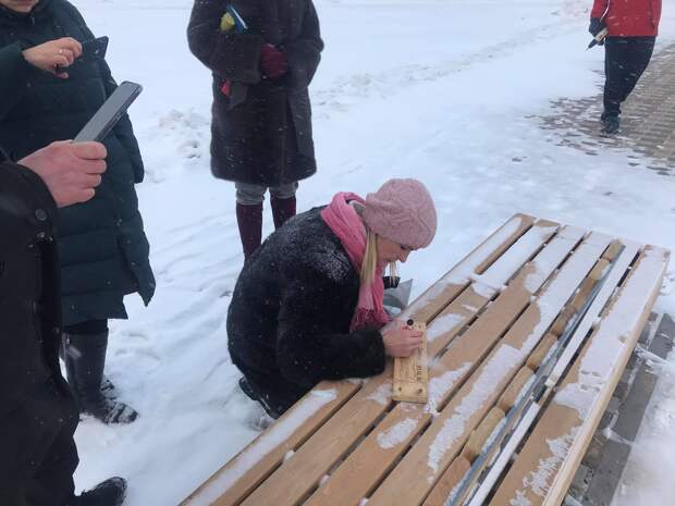 В Солнечном активисты открутили и сдали на экспертизу доски от новых лавок в Путинском сквере