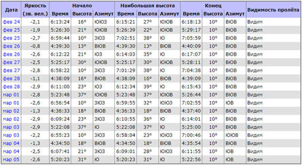 — Двигаясь довольно быстро по небу, МКС набирает высоту над горизонтом, и на юге она будет на наибольшей высоте, а значит, и наблюдать ее будет лучше всего в этот момент. Как правило, и яркость у станции в этот момент максимальная. Выбирать моменты пролетов МКС надо по наибольшей высоте над горизонтом, это удобнее для наблюдений. Вечером, конечно, удобнее наблюдать, но те, кто выгуливает свою собаку утром перед работой, вполне могут увидеть и утренние пролеты МКС, — рассказали в обсерватории.