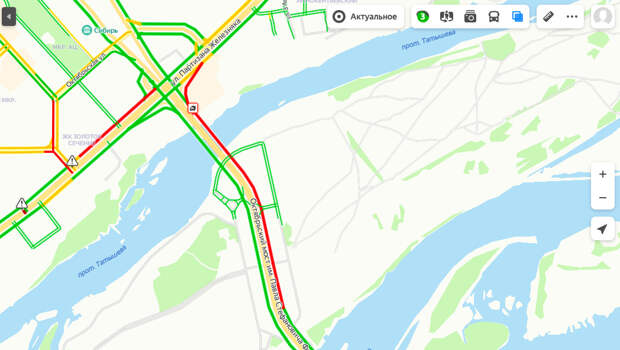 Авария автобуса и такси поставила в пробку половину Октябрьского моста