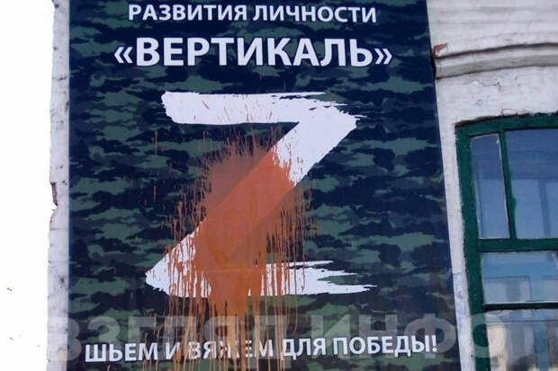 В Минусинске на этой неделе кто-то облил краской баннер с символом Z, который висел на штабе волонтерского движения «Шьем и вяжем для победы».