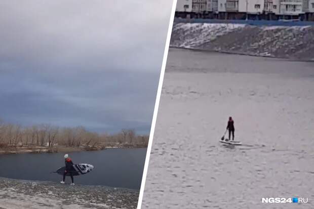 Красноярец Денис Амосов прислал в редакцию NGS24.RU видео, на котором девушка с сапом выходит на Абаканскую протоку Енисея возле Белых рос и начинает кататься по воде. Между тем, в Красноярске сегодня, 6 декабря, правда градусник показывает непривычную для последнего месяца зимы температуру, +2 градуса.