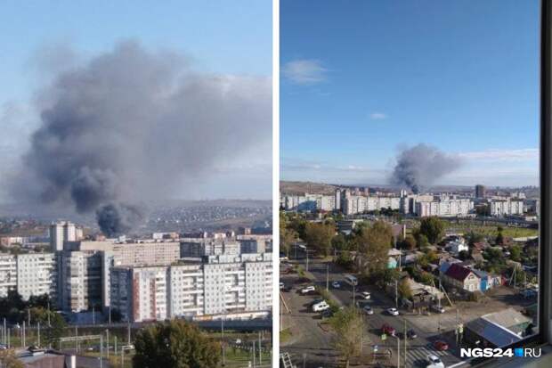 Столб черного дыма виден даже в центре. Он поднимается с территории боксов в районе улицы Калинина. Как уточнили корреспонденту NGS24.RU в МЧС по Красноярскому краю, огонь распространяется по адресу Дорожная, 16А.