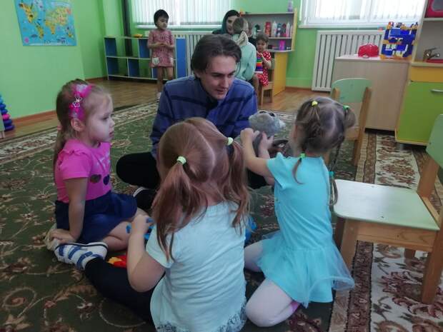 В детсад на правом для занятий с детьми приехал студент Кембриджа