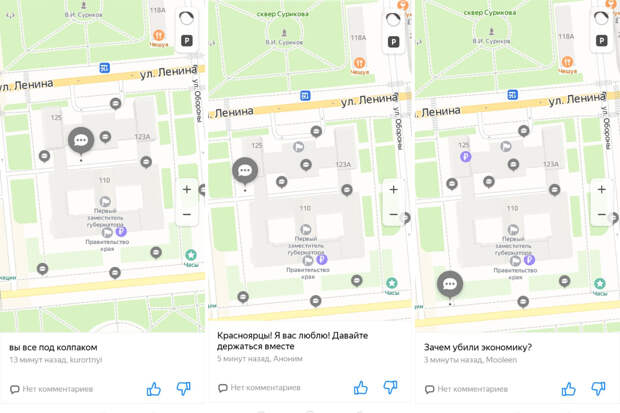 Красноярцы устроили онлайн-митинг у здания правительства. Яндекс удалил все метки