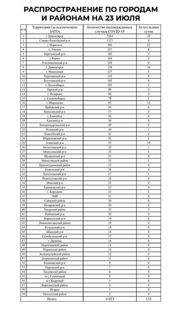В Красноярском крае за минувшие сутки зафиксировано еще 133 случая COVID-19, сообщает оперштаб по борьбе с коронавирусом, общее число переболевших за весь период составило 11 923 человека.