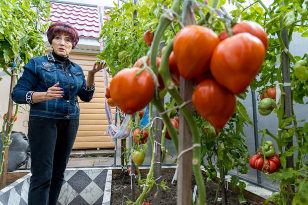Наталья в этом году вырастила самый большой помидор в России и выиграла благодаря ему машину в ежегодном конкурсе «Минусинский помидор». В теплице у женщины десятки томатных сортов разных цветов и размеров. Она знает, как вкус каждого плода сохранить на зиму — за 39 лет овощеводства рецепты стали проверенными, а самые лучшие — вошли в поваренную книгу.
