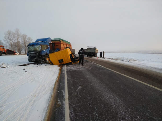Три грузовика столкнулись в страшной аварии на трассе
