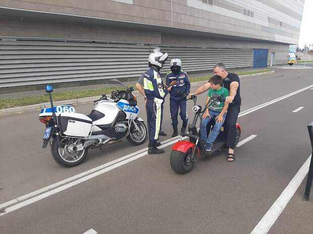 Фото рейда ДПС опубликовал председатель Общественной палаты Красноярска Сергей Волков. Вчера во второй половине дня инспекторы остановили и выписали постановления нескольким отдыхающим в районе галереи «Енисей». Судя по фото, электроскутеристов ловили рядом с прогулочной зоной, на проезде около торгового центра.