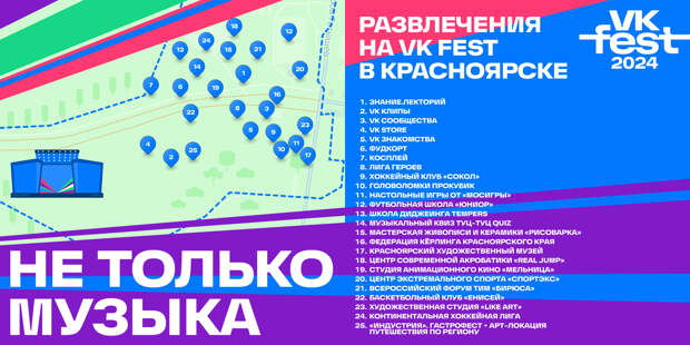 В Красноярске сегодня, 8 июня, состоится первый в городе VK Fest. Он пройдет, как и было запланировано, на острове Татышев. Организаторы мероприятия рассказали, где какие площадки можно отыскать, и во сколько они будут работать.