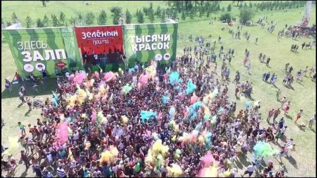 У сцены собрались несколько тысяч детей и подростков, чтобы поучаствовать в залпе красок