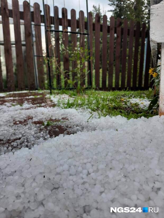 В этот раз град выпал средних размеров, однако его было очень много. Красноярка Дарья рассказала, что он побил листы кабачков и капусты.