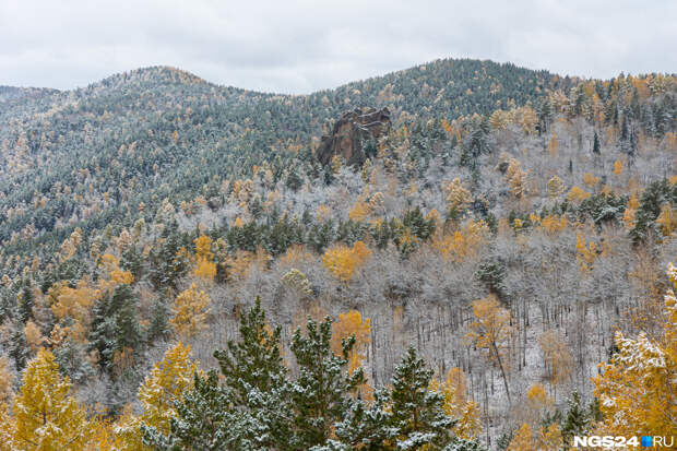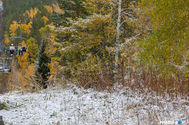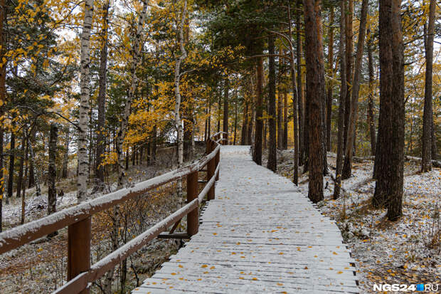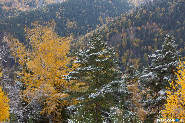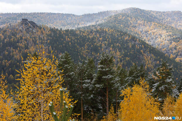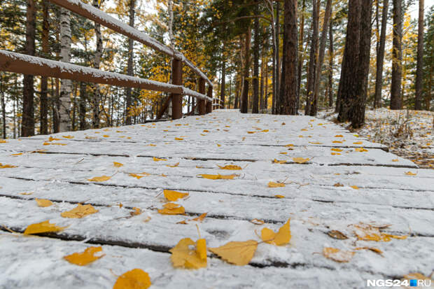 В Красноярск пришли заморозки, за городом на дорогах скользко, погода пасмурная, но зато на природе сейчас красота — золотая осень встретилась с предвестниками зимы. Желтые деревья покрылись легкой изморозью. Посмотрите, как это выглядит в объективе нашего фотографа Артема Ленца.