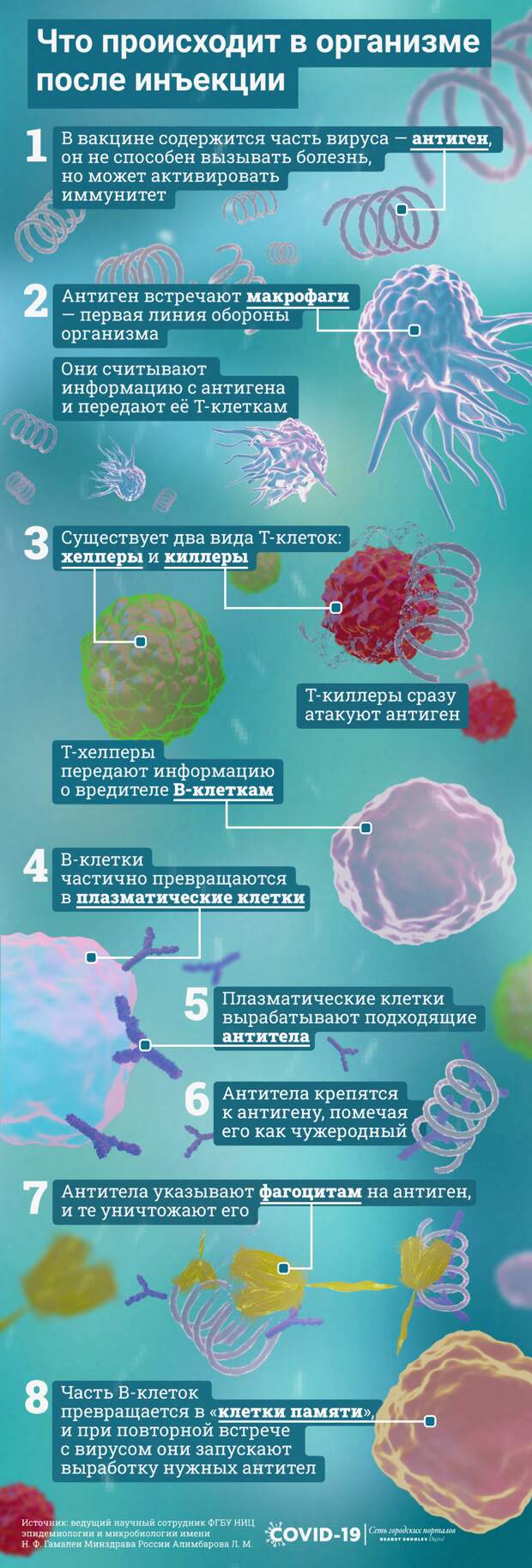 А заодно показываем, как выглядят макрофаги, фагоциты и антитела