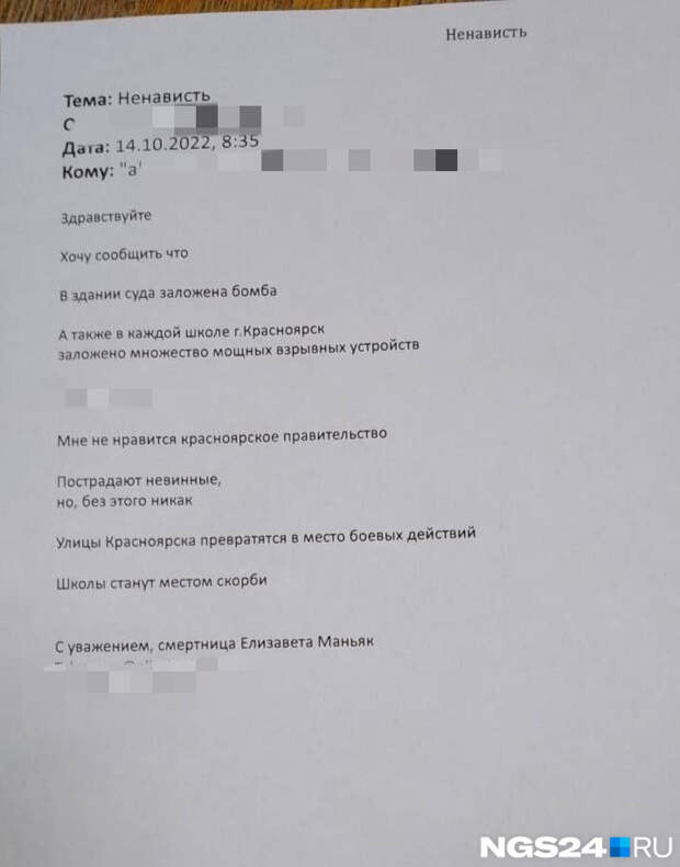 У студентов техникума сварочных технологий и энергетики из-за этого отменили занятия.В приемной института искусств корреспонденту NGS24.RU также сообщили об эвакуации, на почту пришло сообщение с угрозами.