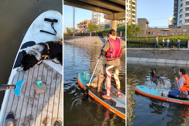 — Обычно человек боится больше, так как не все понимают, что с сапа тяжело упасть, кажется, что конструкция хрупкая и если собака занырнет в воду, то все перевернутся. Это не так. Во-первых, соблюдена техника безопасности, во вторых, всем выдаются спасательные жилеты. Александр, который организует такие катания на сапборде, сам проходит обучение на спасателя, поэтому все безопасно, — поясняет Анастасия. — Самое главное — показать собакам, что все безопасно. Во время катаний, кто-то из собак сразу залез на сап, кого-то пришлось заманивать, но деликатно. В итоге все прошло очень классно.