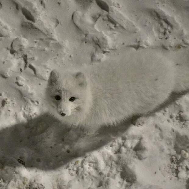 Бесстрашный песец выбежал на дорогу к грузовику и долго сопровождал его в свете фар