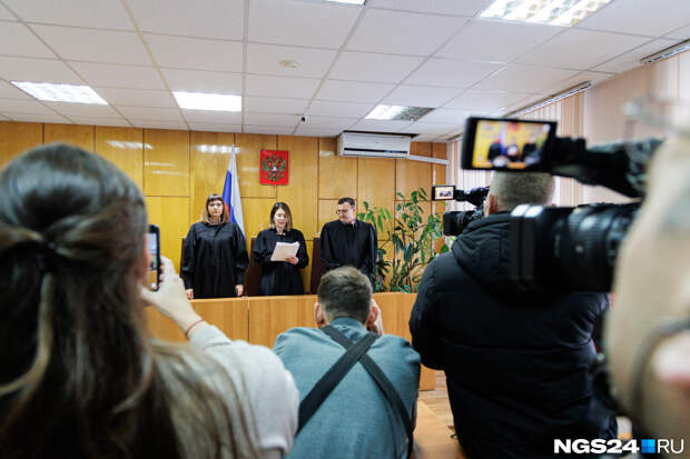 —...все те, кто здесь высказывался, маньяки, насильники, убийцы, и все те, кто высказывался в поддержку меня... Сейчас пойдем (приставу)... Так что вас не пускают, никто не пришел даже посмотреть, как проходит процесс. Вы бы сами всё услышали. Простым людям, уважаемым красноярцам сегодня не верит никто, а вот этим нашим уголовникам, рецидивистам, убийцам верят. Задайте вопрос нашей прокурорше, которая сказки здесь плела….