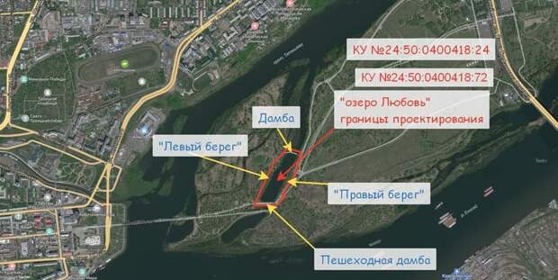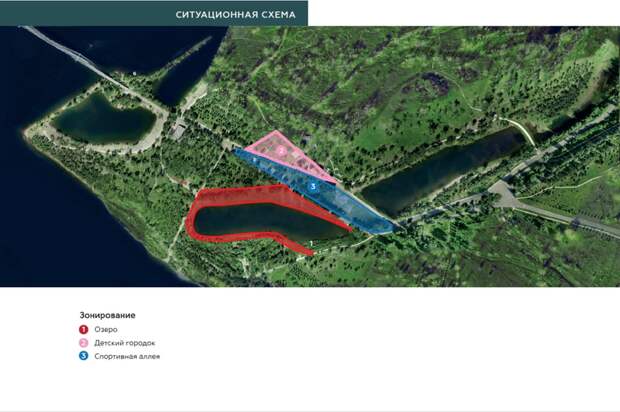 На этом озере находится арт-объект «Отражение любви» — перевернутая надпись «Я люблю тебя», отражающаяся в воде.Подрядчик должен будет разработать эскизный дизайн-проект и провести инженерно-геологические изыскания на территории. Зона охватывает территорию двух участков с кадастровыми номерами 24:50:0400418:24 и 24:50:0400418:72.