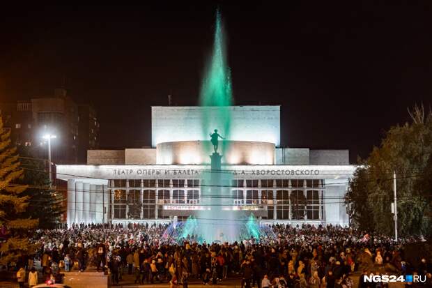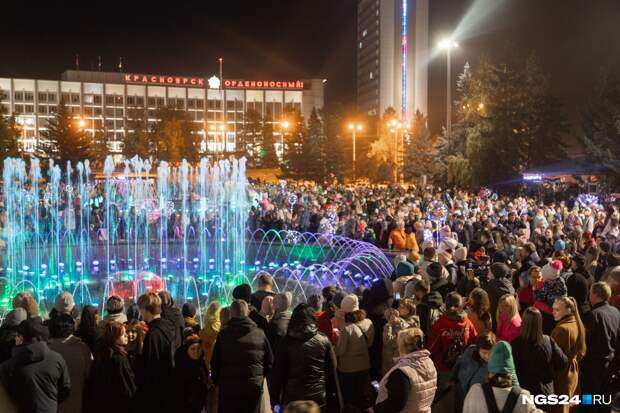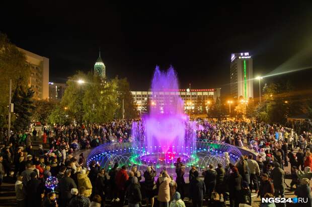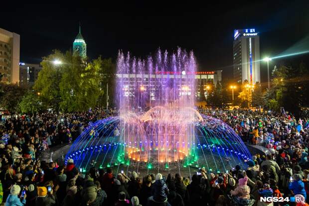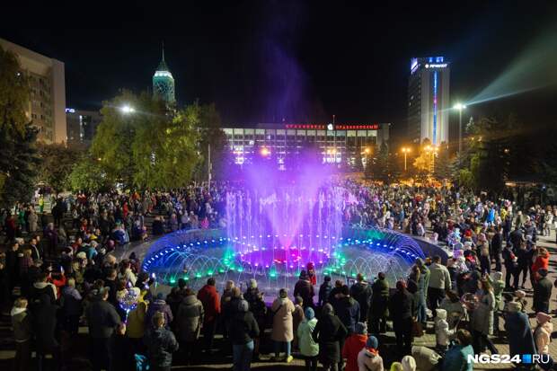В Красноярске сезон фонтанов 30 сентября завершился свето-музыкальным шоу на Театральной площади. Представление шло с 20 до 22 часов.