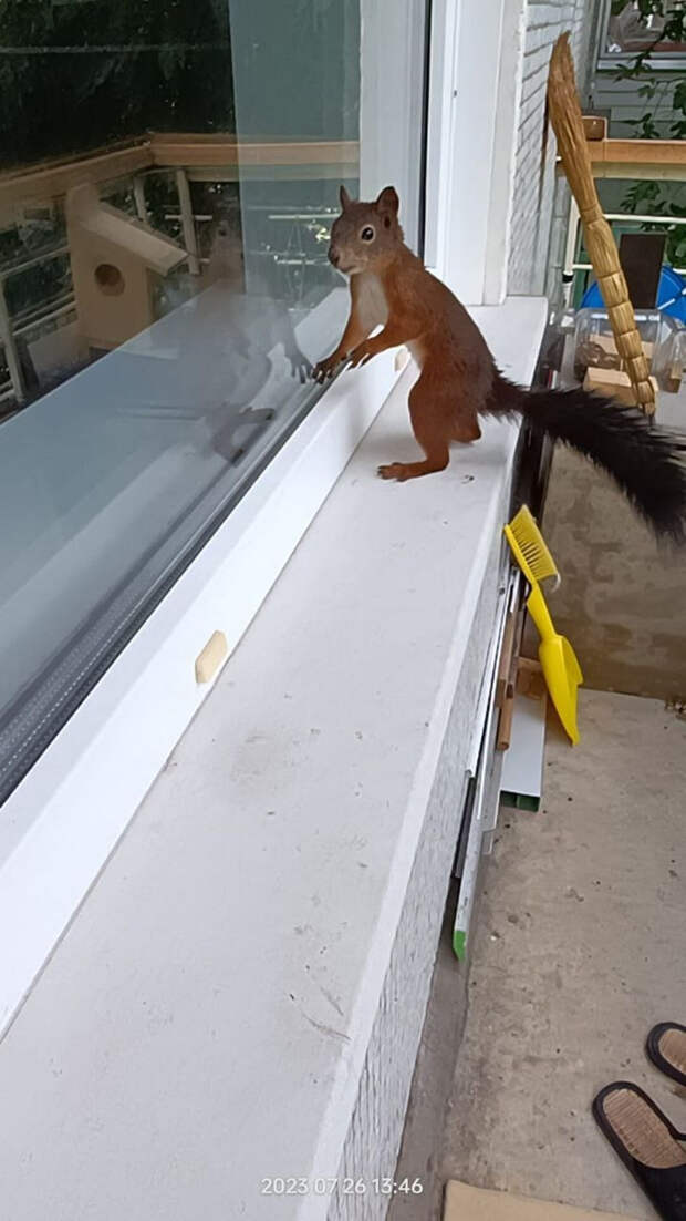 Интересная история произошла как-то раз с самым смелым бельчонком, который не боялся заходить на кухонный подоконник. Под окном у батареи стоял мешок, в котором было около 10 килограмм кедровых орешков, и бельчонок хотел его разглядеть.