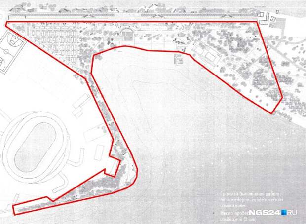 Вырубать всё подряд, конечно, не планируется. В аукционной документации на сайте госзакупок есть схема территории, которую будут осваивать. Без деревьев там только треугольник под парковку в верхнем левом углу.