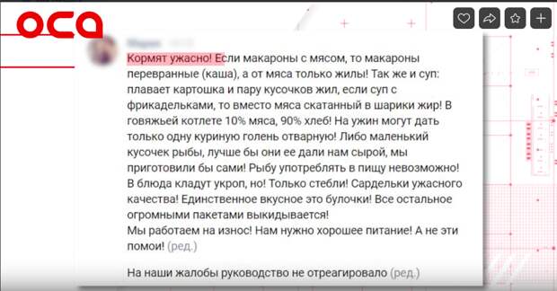 Сотрудники вынуждены выкидывать пакеты с едой, а в больнице говорят, что жалоб не поступало
