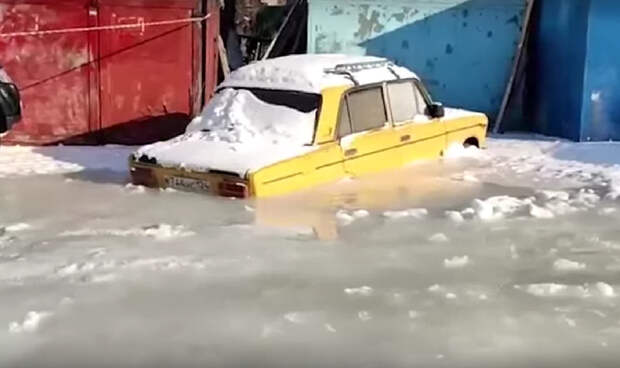 В Октябрьском районе уже несколько дней из-за аварии на трубопроводе затоплена улица между жилыми домами на Киренского, 71 и Серова, 38. Три дня назад коммунальщики провели ремонт, но его хватило на сутки, вчера снова начало топить. Из-за сильных морозов и большого количества воды припаркованные машины просто вмерзли.